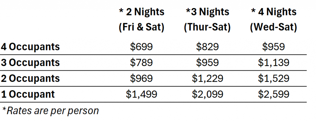 *Tickets not included, based on availability, and can be requested/purchased.